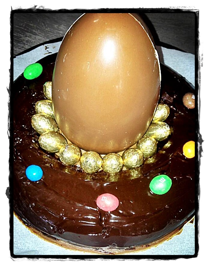 - Mettre des petits oeufs en chocolat tout autour du Kinder.